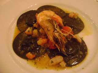 Ravióli nero recheado com camarões e queijo Taleggio (14,00 euros).